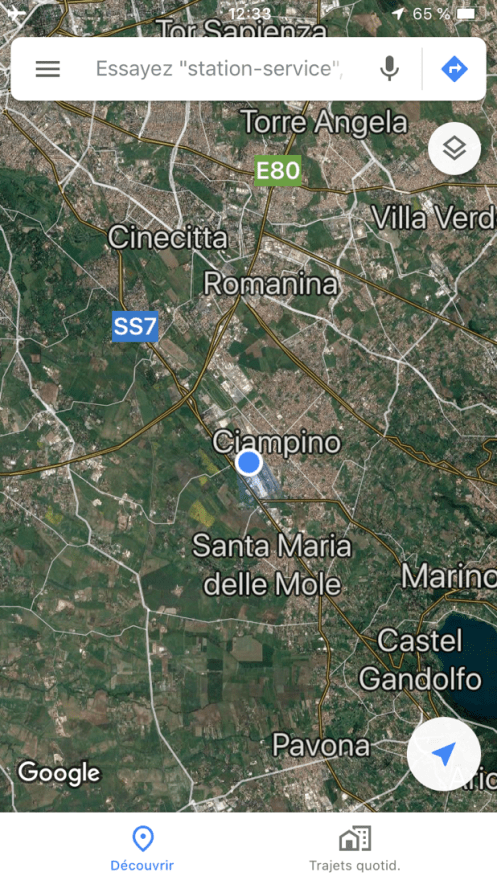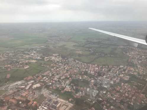 Nous décollons de Ciampino. Juste à côté de Castel Gandolfo, nous l’avion aperçu lors de notre dernière étape de la Via Francigena du sud.