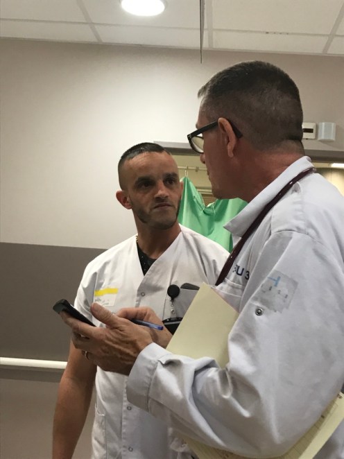 Le médecin à droite, l’infirmier à gauche.