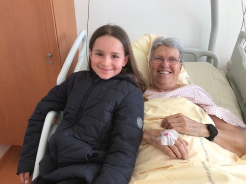 Edith et les petits passent l’après-midi avec moi. Et me suivent dans ma nouvelle chambre. Et oui, comme j’arrive d’un pays lointain …. je ne dois pas être en contact avec les autres malades, faudrait pas que je ramène une vilaine bactérie !!! Donc chambre particulière, ce qui me convient très bien (Hugues et sa famille ne seraient pas restés dans le couloir pendant qu’on soignait ma voisine). Une espèce de semi-quarantaine qu’il ne faut pas prendre au pied de la lettre, on peut venir me voir, je ne suis pas derrière une vitre avec aucun contact…