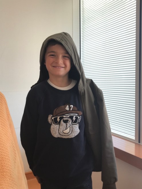 Nuit agitée jusqu’à 2 h du matin, impossible de trouver une position qui me convenait. Ma voisine de chambre est encore plus souffrante que moi. Après un appel à la garde de nuit, nouvel anti douleur et oh joie réveil à 7 h30 en pleine forme.