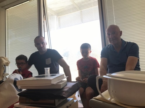 Les petitous arrivent. Siméon avait un anniversaire au McDo de St Césaire, en rentrant ils s’arrêtent. Yves est là aussi…lorsque les Plapla arrivent. Ma Mimi jolie est revenue à l’hôpital, malgré son appréhension. Faut dire qu’elle va dormir chez son tonton et qu’il lui a donné rendez-vous dans ma chambre. Vilain tonton !!!