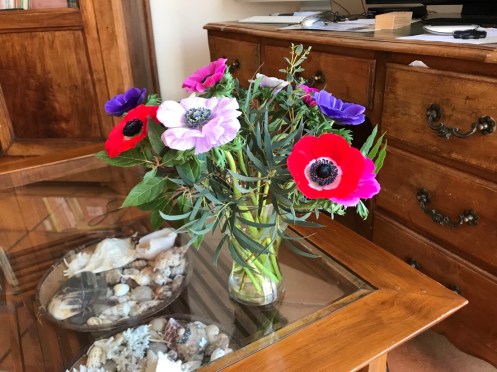 Le Grand Laquet. N’en déplaise à ma Sophie, aujourd’hui je ne peux mettre qu’une photo de l’état de mon bouquet de fleurs et non de celui de la peau de ma cheville… chaque 2 jours l’infirmière fait une photo mais je ne la lui ai jamais demandée. Je n’ai droit qu’à son commentaire : ça s’améliore. Heureusement que ma Sophie comprend la plaisanterie.