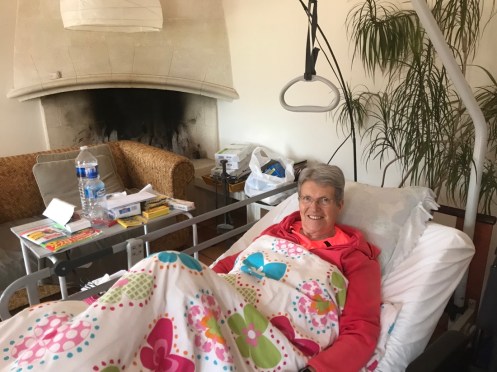 J’ai rendez-vous chez mon chirurgien le 17 mai. Jusque là je n’ai pas le droit de poser le pied par terre.Voilà mon nouvel hôpital.