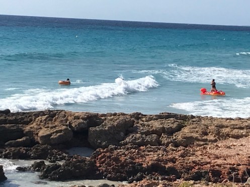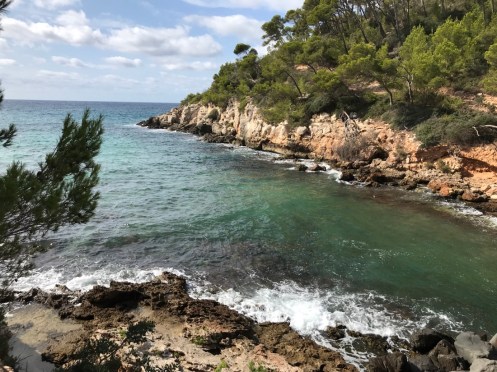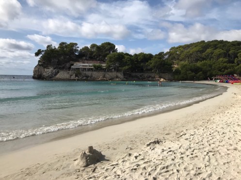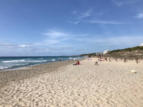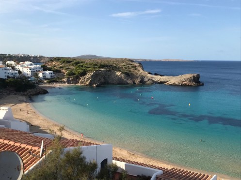 Arenal d’en Castell. Les petites maisons qui sont juste en dessous de nous donnent directement sur la plage. Nous en aurions volontiers loué une.