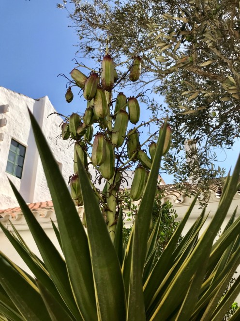 Pas de clic lorsque j’appuie sur la clef. Pas de serrure pour essayer d’ouvrir la voiture. Je téléphone au numéro qu’il y a sur mon contrat, la communication est de mauvaise qualité. Si j’ai bien compris quelqu’un va venir incessamment sous peu. J’ai donné mon numéro de téléphone, pour le dire en espagnol, je suis obligée de me le répéter en français. À chaque groupe de 2 chiffres je repars en arrière. Lorsque je raccroche, j’ai des doutes sur la fin de mon numéro… Heureusement nous sommes devant l’hôtel, ne voyant rien venir, je demande au monsieur de l’accueil qu’il veuille bien téléphoner. Lui, il sait, il appelle Europcar Son Xoriguer (à 400 m de l’hôtel) et non pas Madrid comme moi. 10 minutes plus tard notre dépanneur est là. Après un aller retour pour chercher un crochet, il enlève un morceau à la poignée et oh miracle !!! une serrure. C’est la batterie qui est vide. Nous repartons avec une T Roc WW. Tout va bien… heureusement que ce n’était pas le matin du départ pour aller à l’aéroport ou lorsque nous étions à certains endroits où le téléphone ne passe pas.