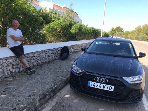 Pas de clic lorsque j’appuie sur la clef. Pas de serrure pour essayer d’ouvrir la voiture. Je téléphone au numéro qu’il y a sur mon contrat, la communication est de mauvaise qualité. Si j’ai bien compris quelqu’un va venir incessamment sous peu. J’ai donné mon numéro de téléphone, pour le dire en espagnol, je suis obligée de me le répéter en français. À chaque groupe de 2 chiffres je repars en arrière. Lorsque je raccroche, j’ai des doutes sur la fin de mon numéro… Heureusement nous sommes devant l’hôtel, ne voyant rien venir, je demande au monsieur de l’accueil qu’il veuille bien téléphoner. Lui, il sait, il appelle Europcar Son Xoriguer (à 400 m de l’hôtel) et non pas Madrid comme moi. 10 minutes plus tard notre dépanneur est là. Après un aller retour pour chercher un crochet, il enlève un morceau à la poignée et oh miracle !!! une serrure. C’est la batterie qui est vide. Nous repartons avec une T Roc WW. Tout va bien… heureusement que ce n’était pas le matin du départ pour aller à l’aéroport ou lorsque nous étions à certains endroits où le téléphone ne passe pas.