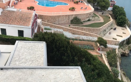 La vue depuis la terrasse de notre hôtel à Es Castell.