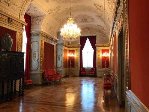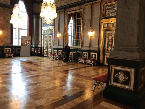 Changement de lieu, nous allons visiter les pièces de réception du Palais Royal. Ici, il faut montrer pattes bleues !!!