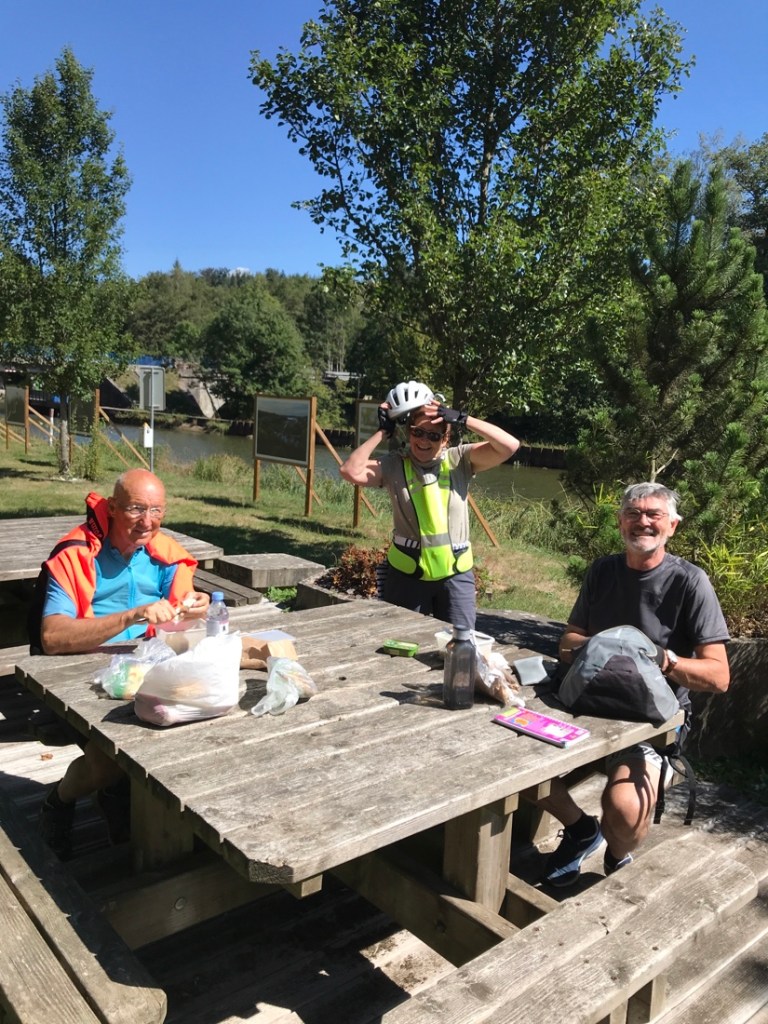 Pour Tatie Arlette et les autres aussi, Jean-Luc et Christine nos amis de L’Hay-les-Roses que j’ai connus à Madère, sont venus nous rejoindre à Nancy. Ils vont pédaler avec nous jusqu’à Macon. Hier ils ont fait avec nous 81 km pour la première fois. D’où l’apéritif au champagne pour fêter ça !!!