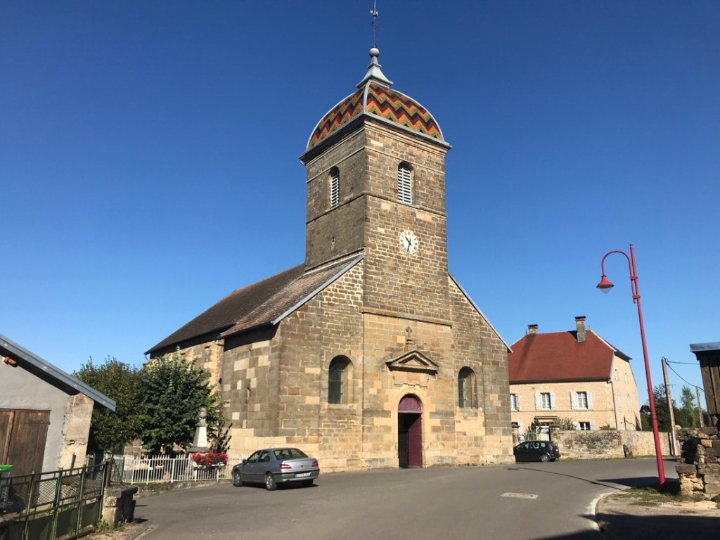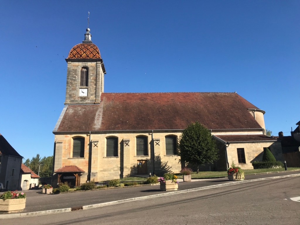Fort agréable balade sur les bords de Saône à mon réveil…merci Aline pour toutes ces photos ( prises en roulant….? ); ces toits d’églises paraissent bien caractéristiques de la région calme et verdoyante …je comprends que vous ayez apprécié cette étape avec une météo idéale…Merci…pour les colchiques…si si je les ai vues et…j’ai aimé ! J’ai été interrompue par Maryse…au téléphone !! Bon, j’arrête, j’ai perdu le fil !! Allez zou, en selle…vous n’êtes pas au bout !! Très bonne journée !!