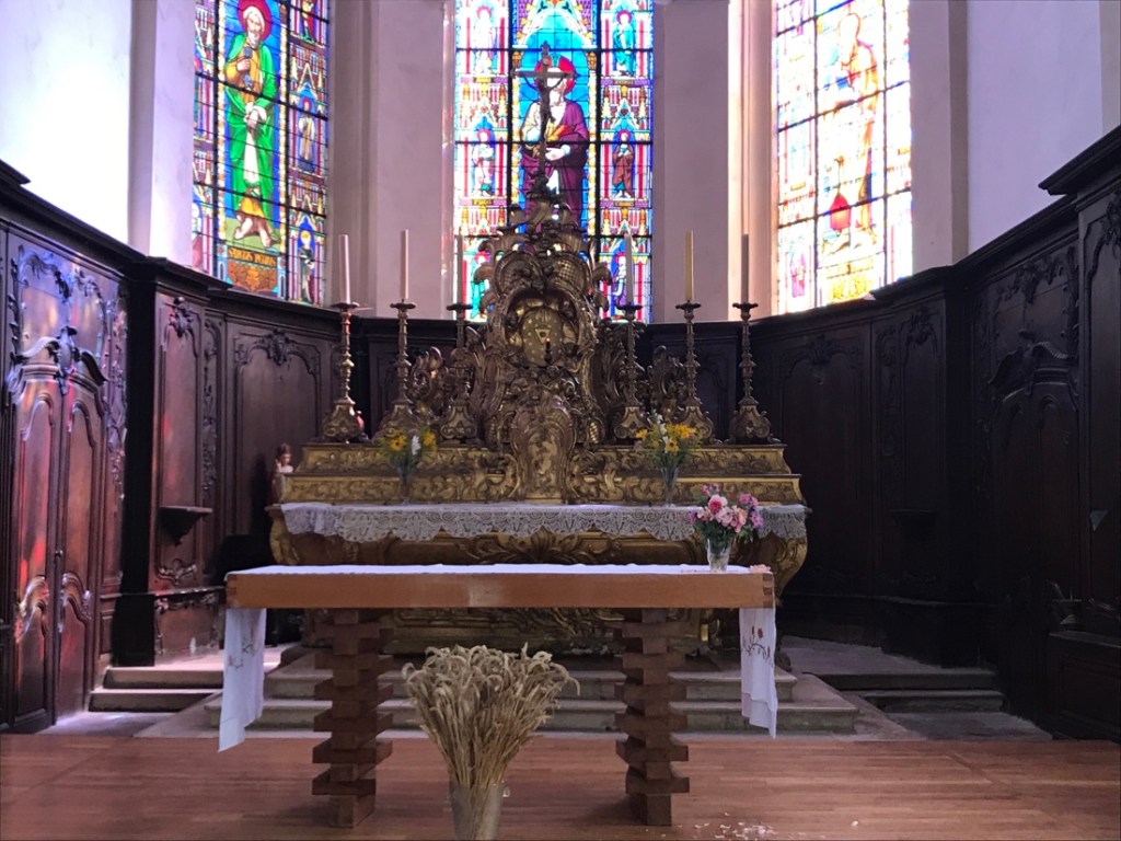 Ormoy, toutes les églises ont maintenant un toit avec des tuiles vernissées. Christine. Et Yves qui arrive derrière… et oui c’est la fin d’une côte !!!Cendrecourt. En voilà une autre. (Eglise avec toit en tuiles vernissées.)Mais pourquoi les vélos sont arrêtés ici ??? Ben voyons pour acheter le pique-nique. C’est jour de marché à Jussey. Eglise de Jussey. Retable en bois recouvert de feuilles d’or. Gevigney-et-Mercey Que ça fait du bien de se reposer !!!Arrêt pique-nique au bord de la Saône. Depuis notre arbre de pique-nique. Elles étaient dans le champ face à nous mais en noir. Je voulais faire colchiques dans les prés mais on ne les voit pas bien. Mairie de Scey-sur-Saône-et-Saint-Albin , berceau ou capitale des rillettes Comtoises !!!Écuries du château derrière la grille. Tunnel canal de Saint-Albin. Après le tunnel. À l’écluse de Rupt-sur-Saône, le joli petit âne qui regarde passer les bateaux et qui change de place au fur et à mesure. Le château de Ray-sur-Saône Ray-sur-Saône vu du château. Un ouvrier est sur le toit du château en train de souder un épi de faîtage. Petite promenade digestive sur les bords de Saône. Il fait presque nuit mais les photos rendent bien. Nous allons faire une croisière sur la Saône…Et pour terminer, le restaurant où nous avons mangé ce soir. C’était bon, sympa et pas cher. Toutes les qualités. En plus on ne pouvait pas aller ailleurs, c’était le seul restaurant du village de 200 habitants !!!
