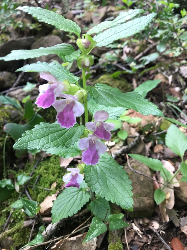 Chemin bordé de jolies fleurs. Mélitte à feuilles de Mélisse d’après PlantNet.