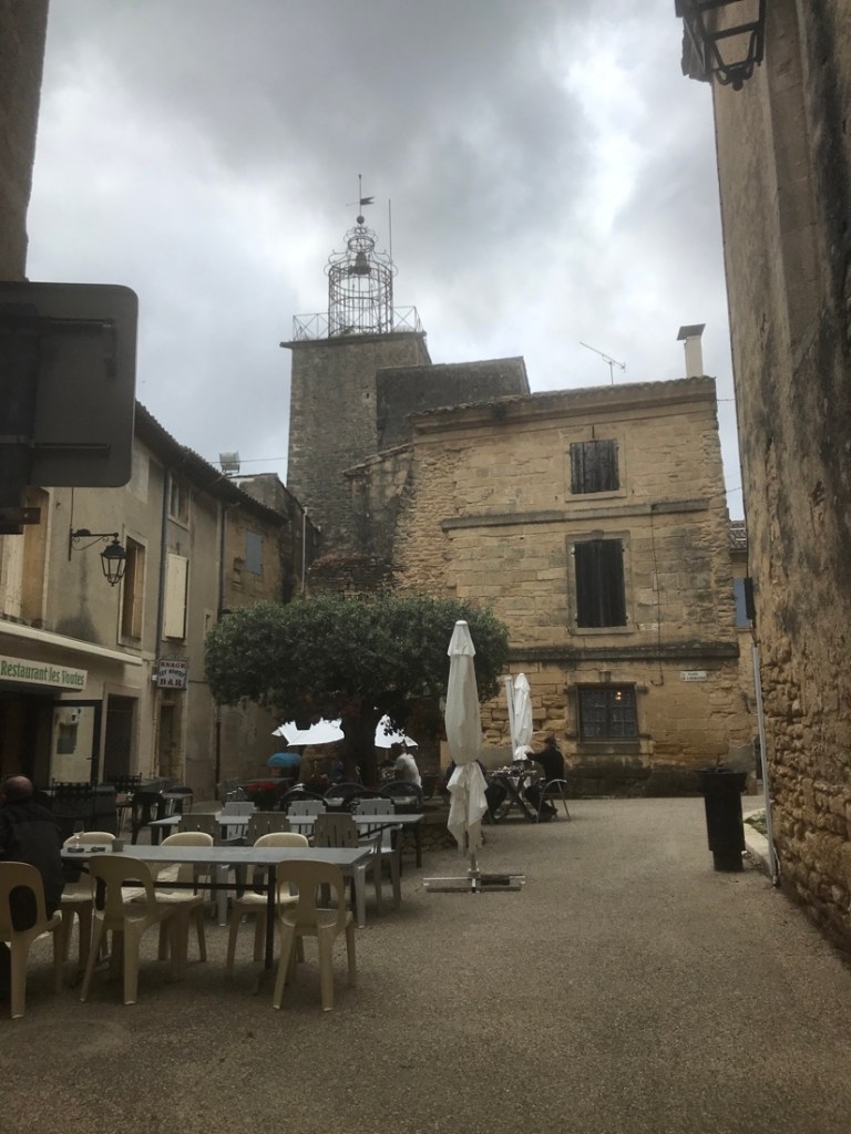 Et voilà, c’était à prévoir… nous avons mangé notre boîte de sardines avec un reste de pain, assis sous un chêne, car nous n’avons rien trouvé à Argilliers et nous tombons sur un restaurant qui sert encore en traversant Vers.