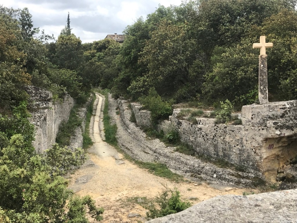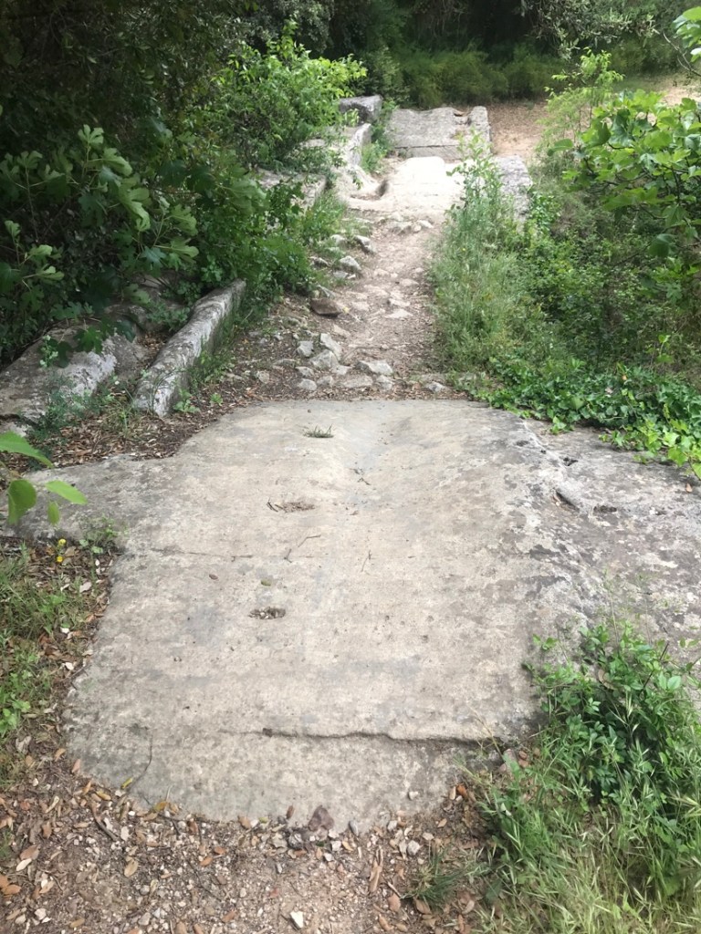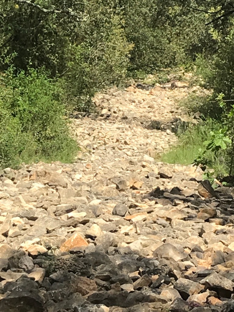 Chemin creusé au milieu par le pas des chevaux qui transportaient les pierres sur des charrettes.