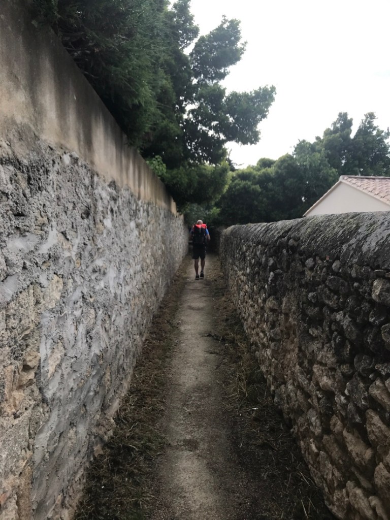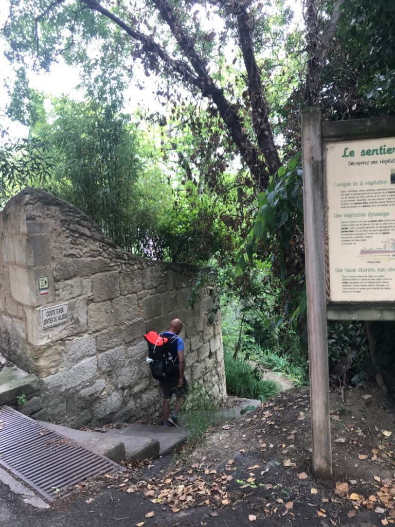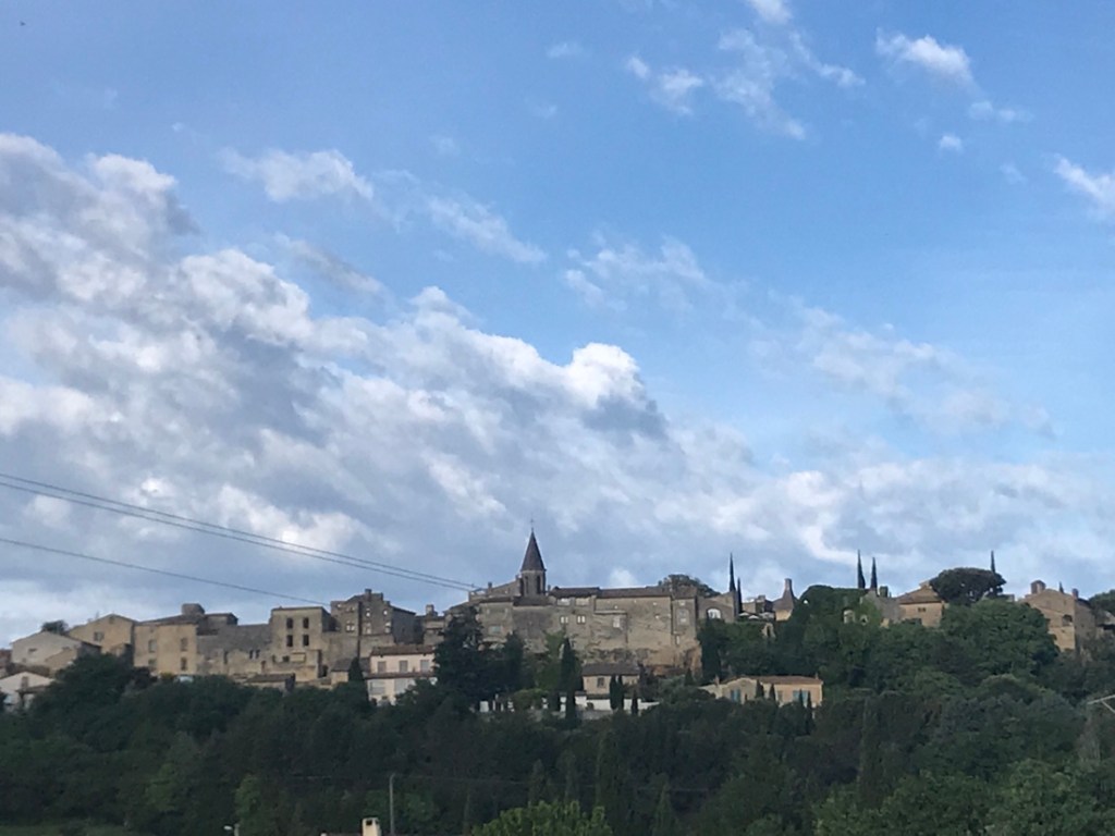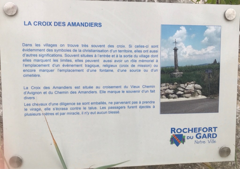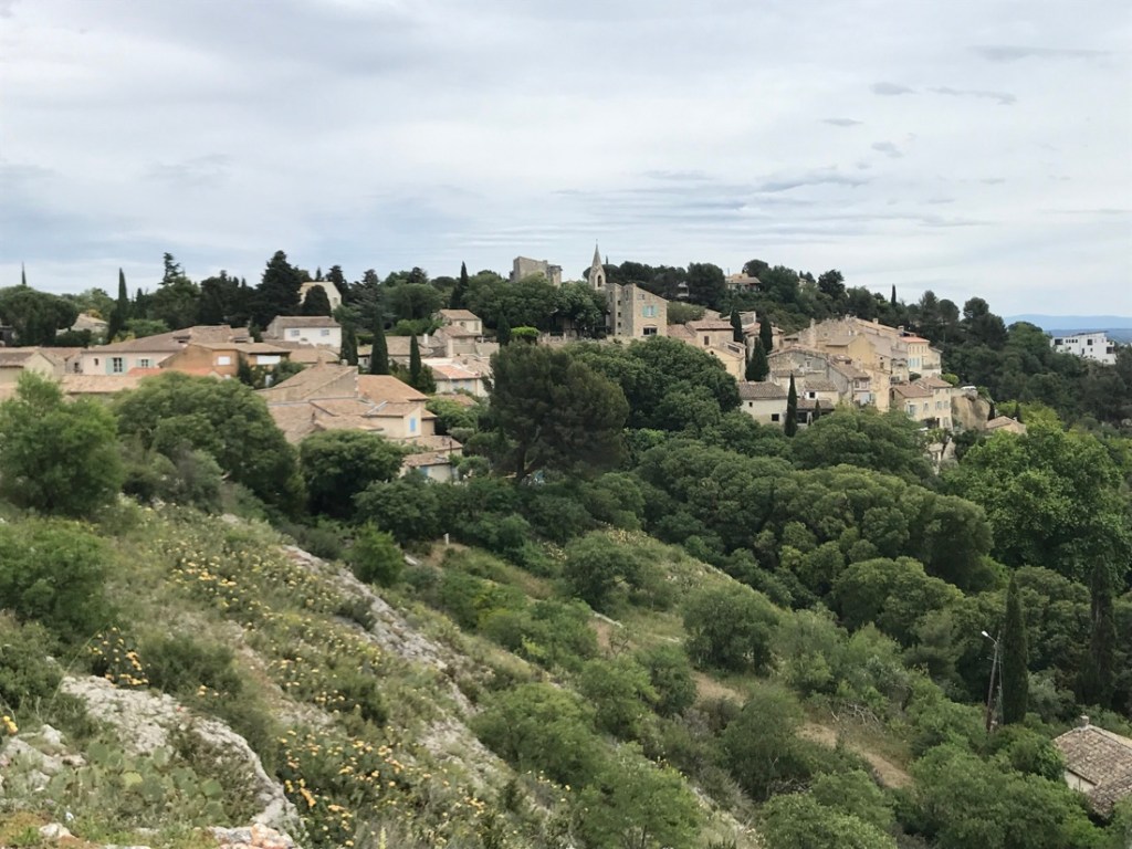 Rochefort-du-Gard. Nous n’y rentrons pas. Chance, nous passons par le bas. J’ai un souvenir de rando récent où je me suis trouvée en difficulté en passant au dessus du village.