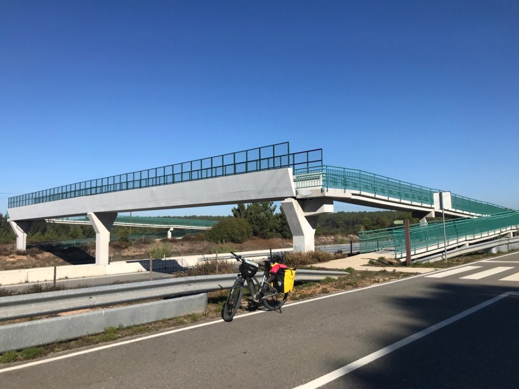 Une passerelle pour les piétons pour traverser l’autoroute et aller faire un parcours pédestre.