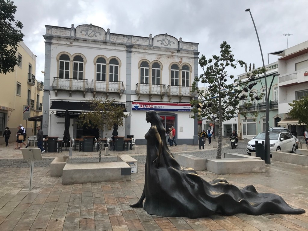 Cette statue fait référence à la légende de Floripes : c’est l’histoire d’une femme maure qui erre tous les soirs, triste et perdue dans la ville d’Olhão. Prisonnière d’un enchantement elle tente de séduire les pêcheurs, afin de briser son sort.