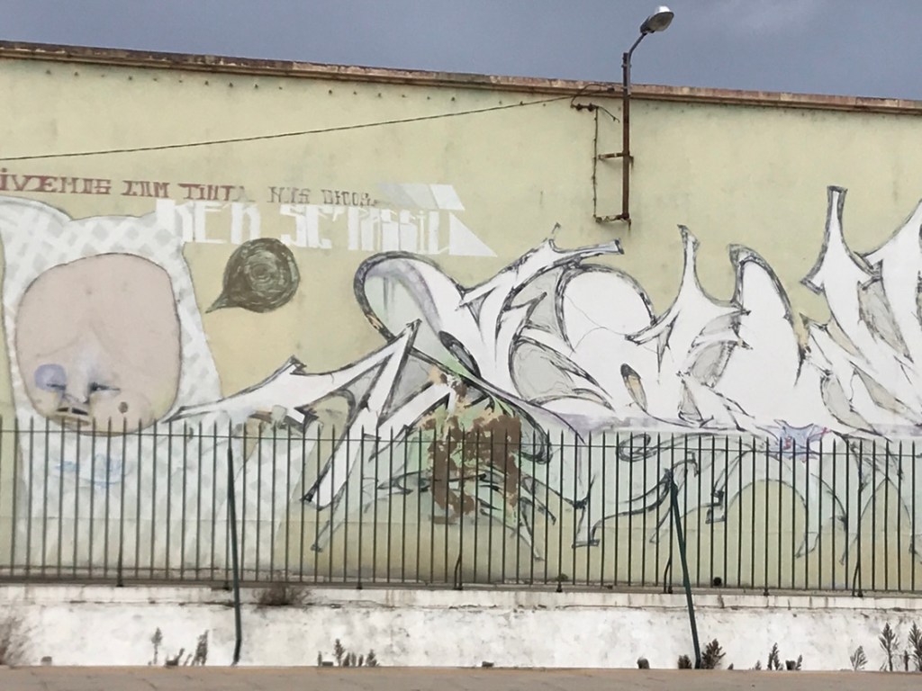 Merci pour ce bel aperçu de Faro et Olhao ! Des tags, des demeures imposantes…des fleurs, des panneaux particulièrement explicites !! et la pluie qui vous a épargnés toute la journée…un jour de repos idéal !! Hop ! Debout ! Faut repartir en espérant le beau temps !! J’attends Maryse qui vient pour le repas ! Bisous 😘