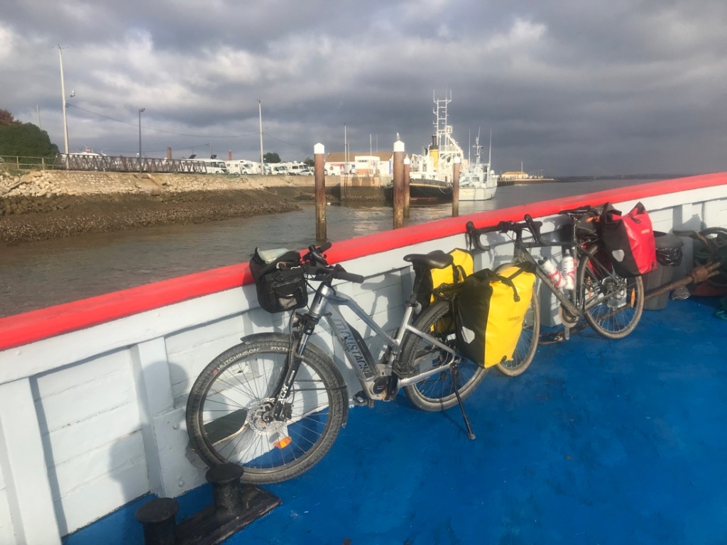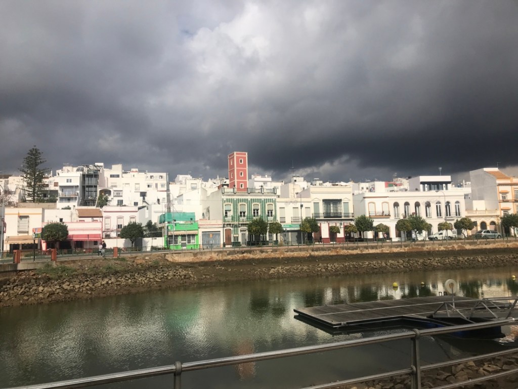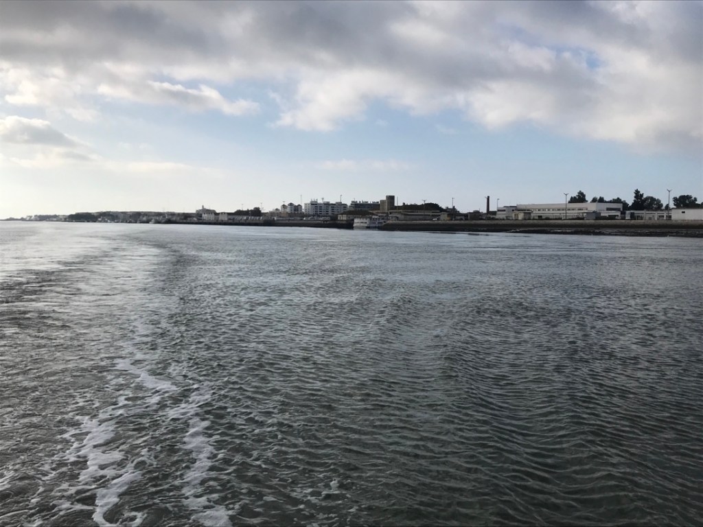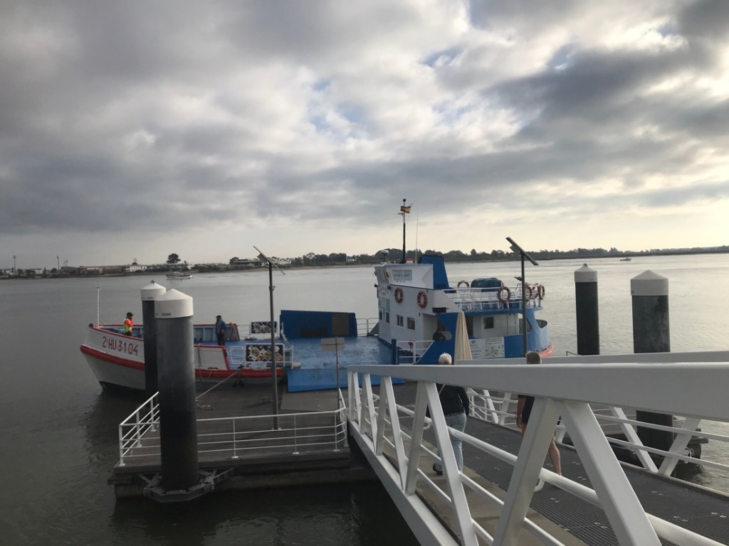 Aujourd’hui nous prenons le ferry pour traverser le Guadiana qui sépare l’Espagne et le Portugal. Et là en une fraction de seconde j’ai perdu… une heure de ma vie, je me console en pensant que je la récupérerai fin octobre !!!