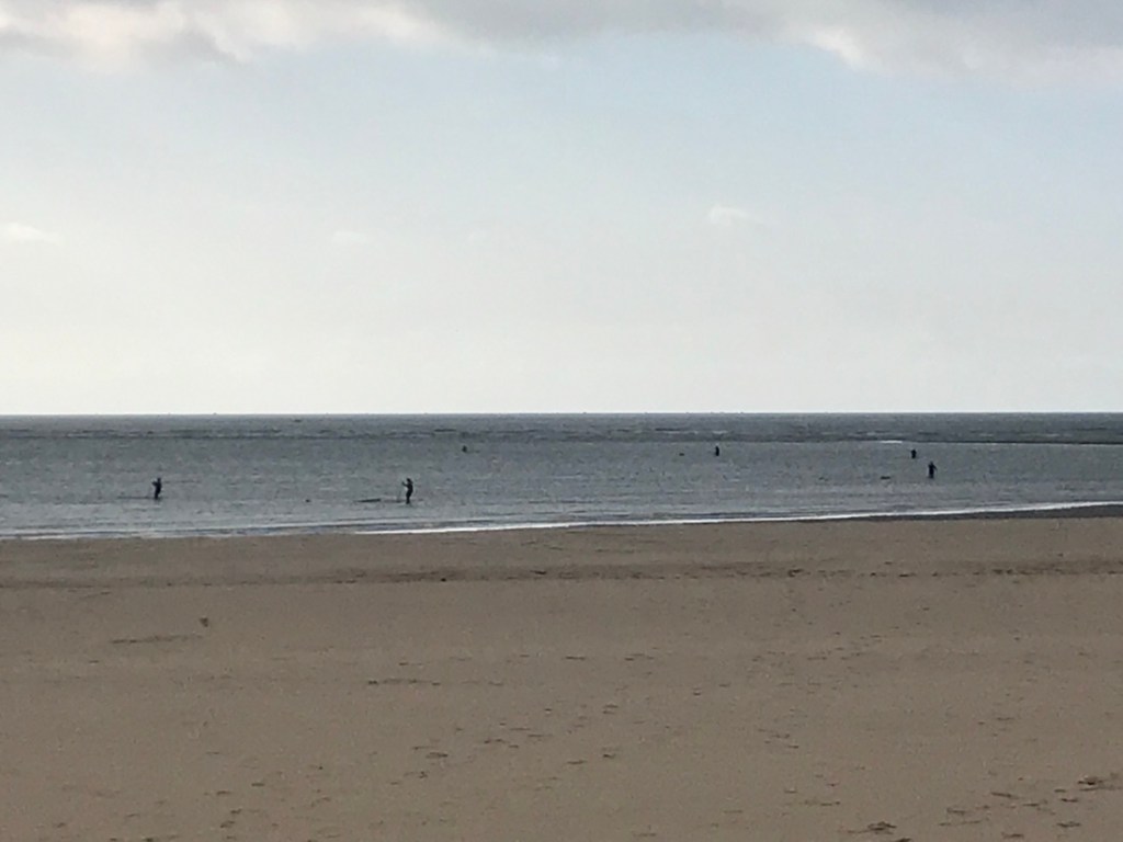 Là, les petits points noirs n’attendent pas la vague pour faire du surf, ce sont des pêcheurs de coquillages.