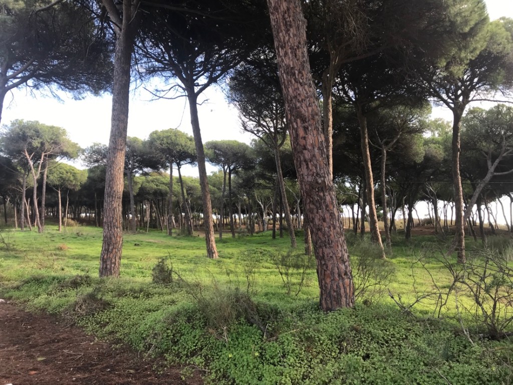 Étonnant toute cette herbe verte sous les pins.