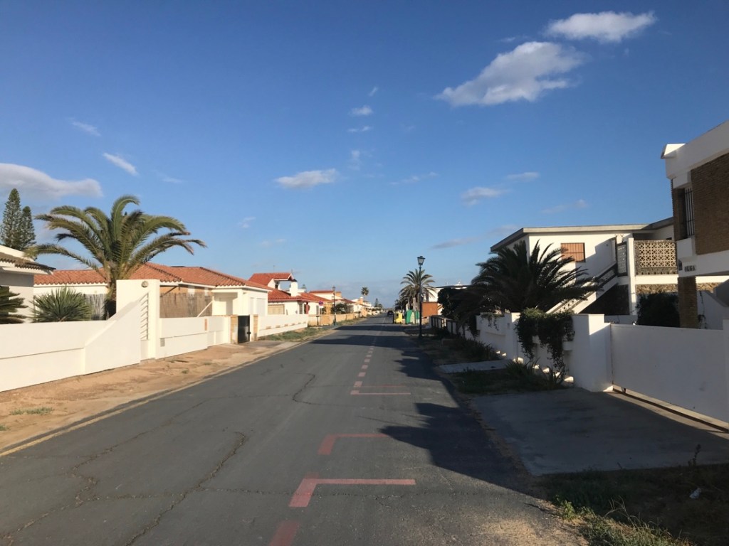 Ce soir nous dormons à Lepe, la capitale de la fraise d’après mon guide de vélo.