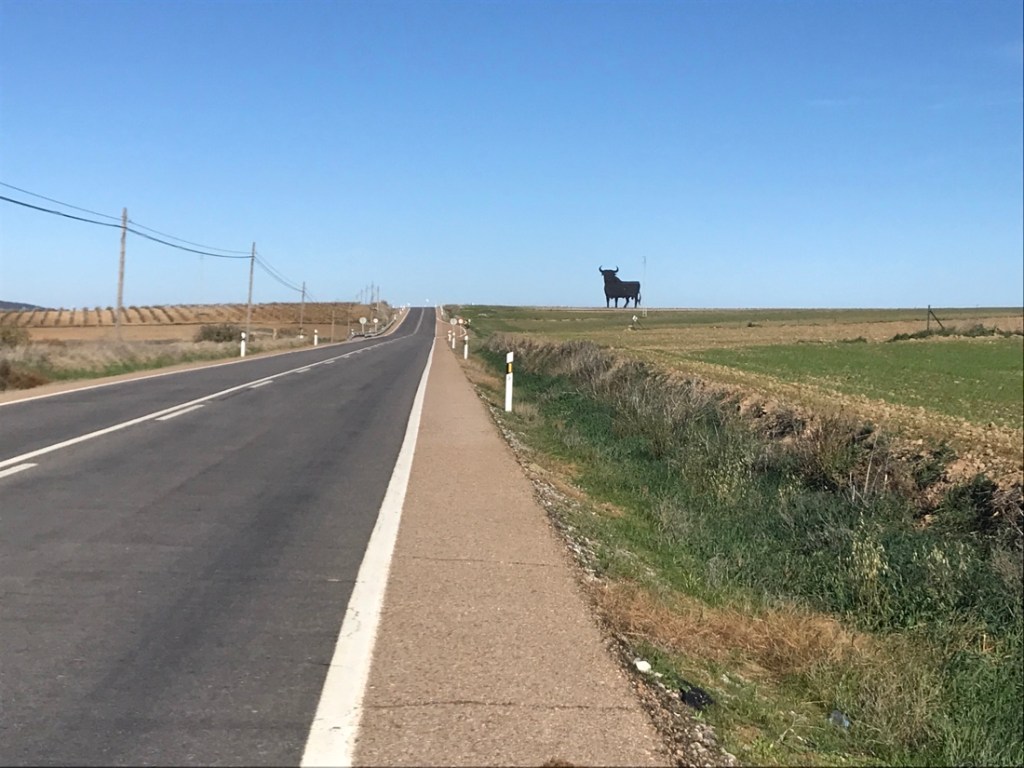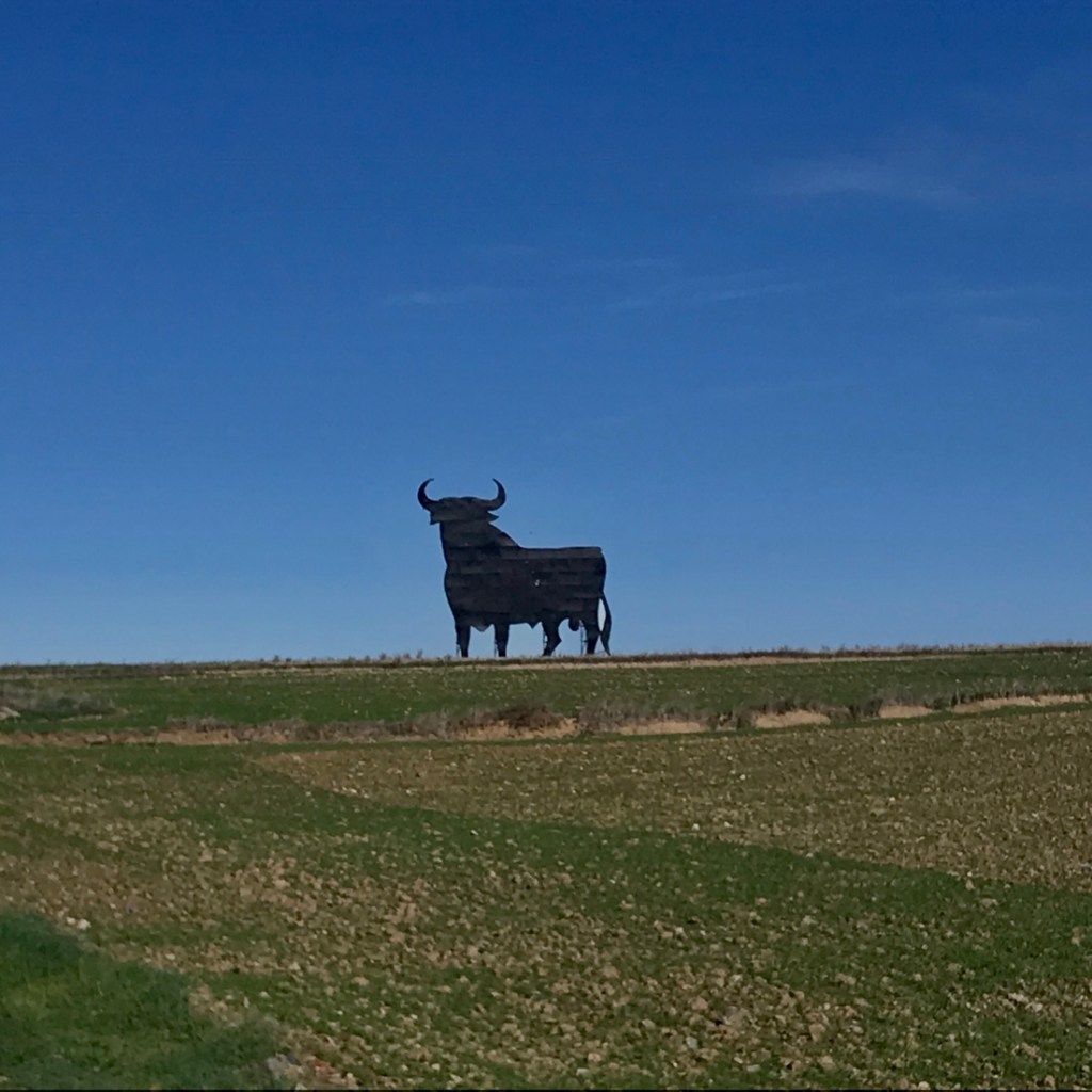 Au loin, le taureau qui a accompagné ma route lorsque je partais en Espagne dans ma jeunesse. En premier au niveau de Béziers et ensuite en Espagne.