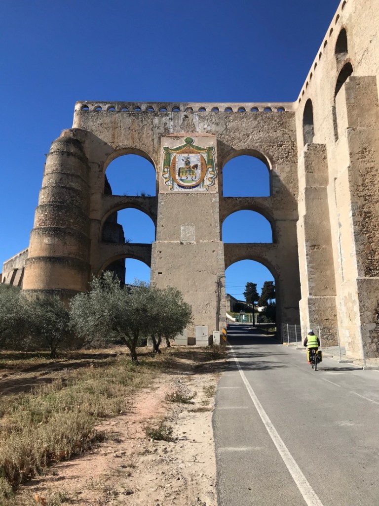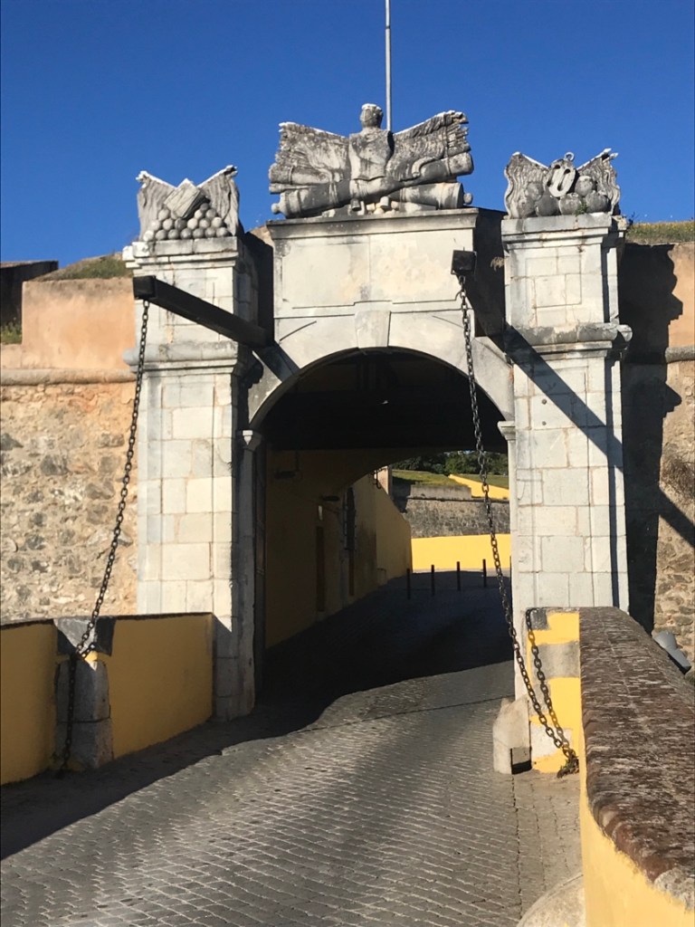 Après une montée qui nous a coupé les jambes et le moral, nous rentrons dans Elvas ville inscrite au patrimoine de l’Humanité. C’était une ville fortifiée défensive près de la frontière avec l’Espagne. Seule l’armée de Napoléon a vaincu la forteresse en 1808. Le vilain !!!