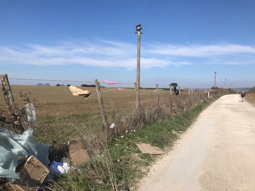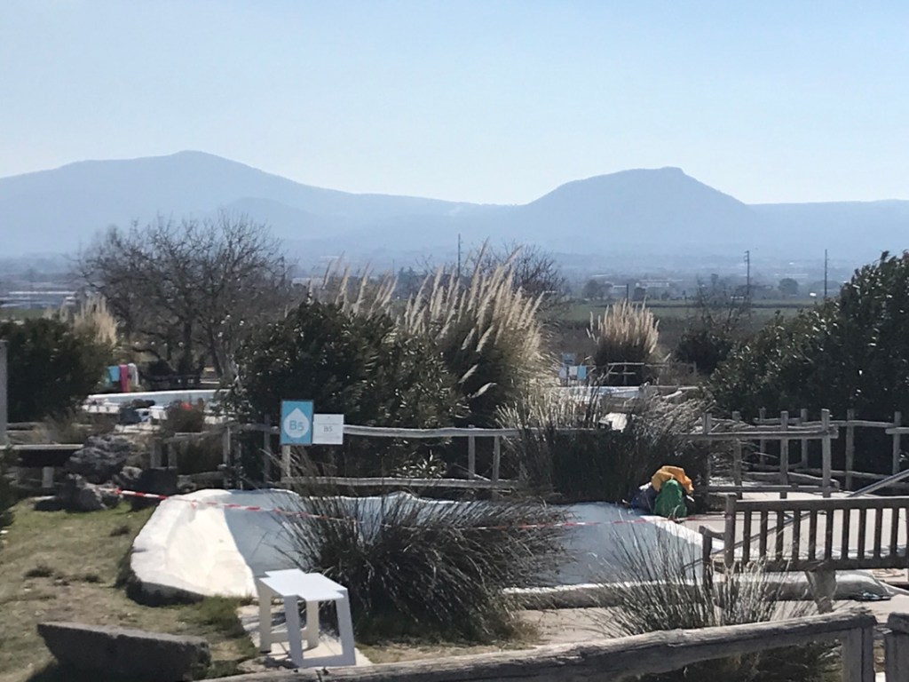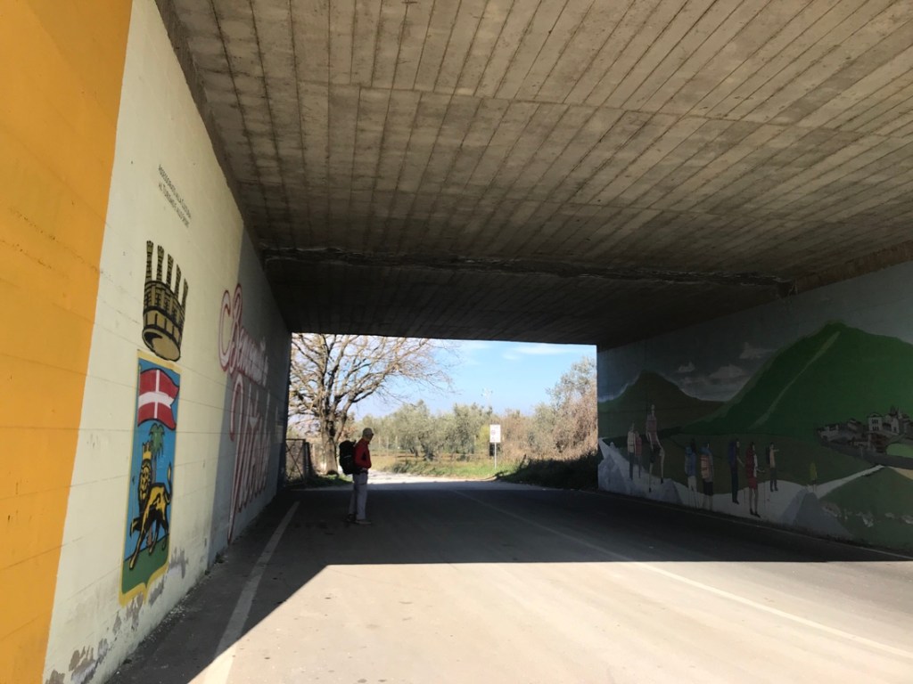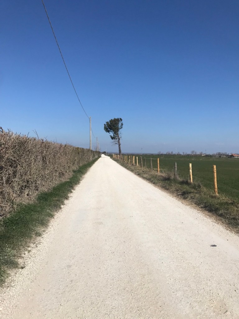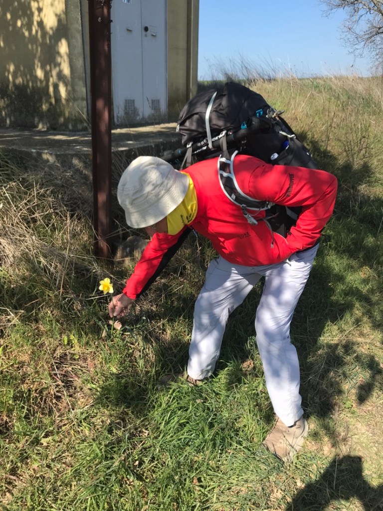 Je suis allongée au soleil sous la flèche rouge, dans une olivette, après avoir mangé mon panino journalier. Là il n’y a pas de vent.