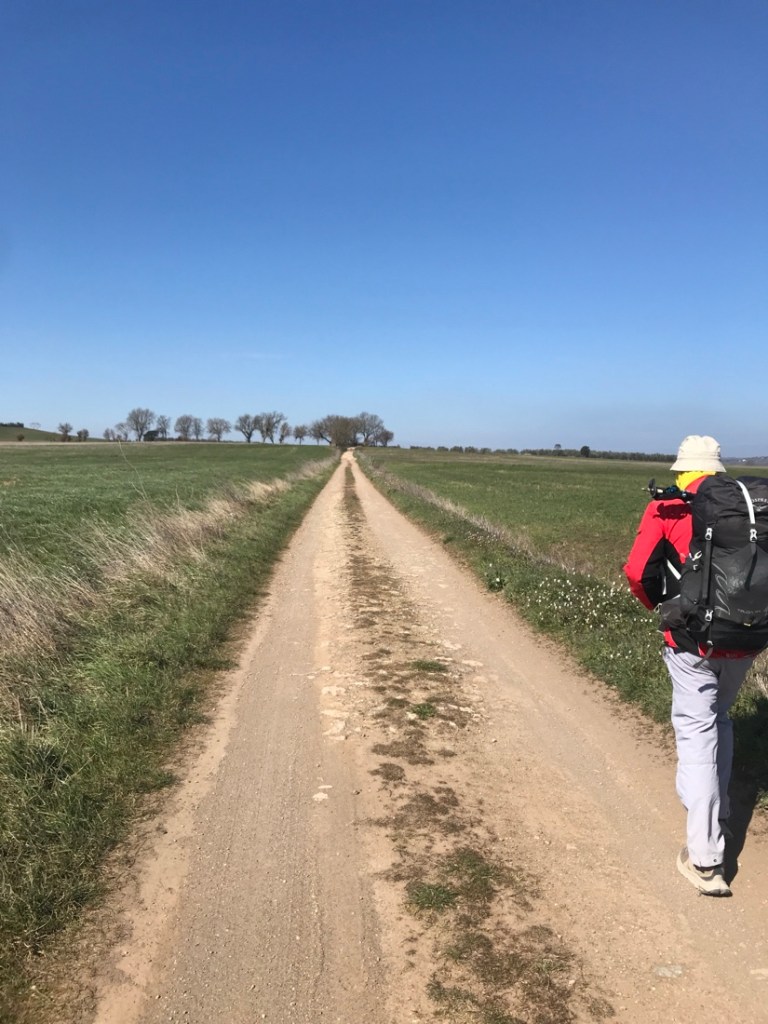 La rue de notre chambre d’hôtes. Remplie de magasins, avec même un restaurant presque en face de chez avec le menu du pèlerin que nous sommes en train de manger.