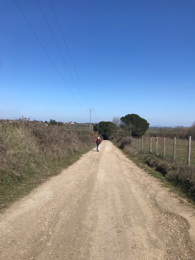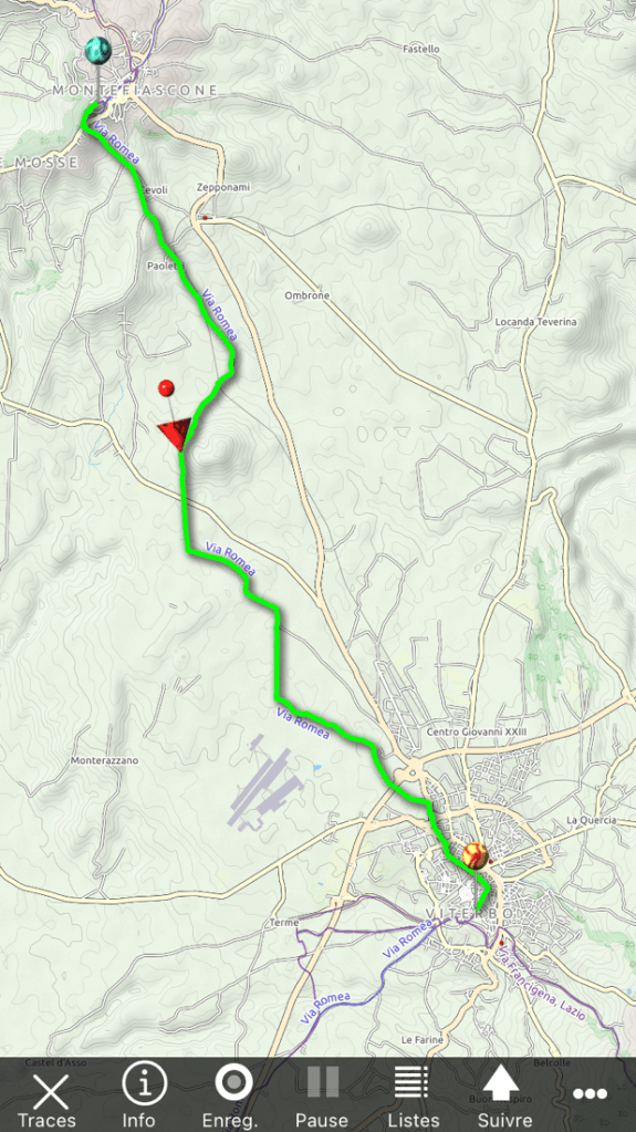 Au loin Montefiascone. Nous l’aurons en ligne de mire toute la journée. On le voyait aussi hier lorsque nous étions en hauteur.