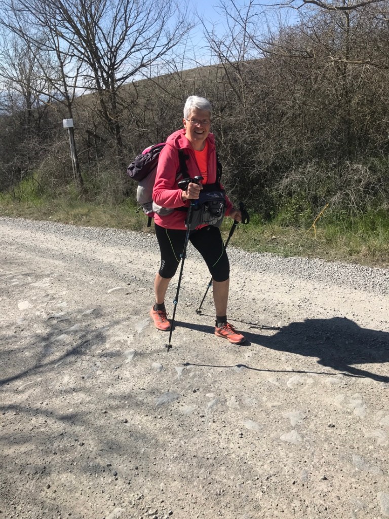 Étape extra, bien qu’en montée tout le long!! mais avec les 2 cannes tu as une allure !!! Il est bien vrai, que vous avez beaucoup de chance pour le beau temps, malgré le vent et le froid du début, mais la pluie vous a épargnés, pour le moment !!! J’aime bien toutes tes photos mais mes connaissances de la langue italienne ne me permettent pas de tout comprendre…et toi, tes cours d’italien sont ils utilisés ? Dimanche pépère, je vois que vous en avez bien profité !! Zou! En route pour une nouvelle semaine, avec du beau temps j’espère, et que des montées gentilles ! Je viens d’avoir un appel de Marysette, elle tousse, mouche, mais n’a presque pas de fièvre et se sent moins fatiguée….ça progresse !! Bisous….!!!