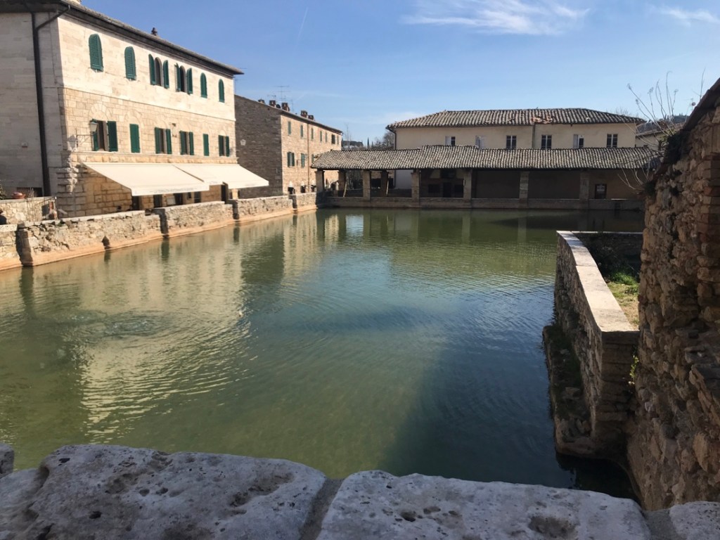 Bagno Vignoni, un charmant village avec une piscine sur la place.