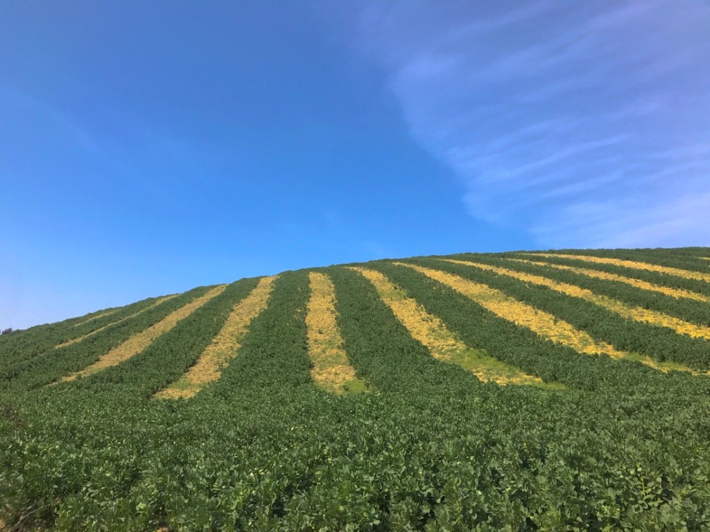 Nous sommes souvent surpris lorsque nous voyons que des champs très pentus ont été travaillés. Ils travaillent avec des tracteurs à chenilles, c’est moins dangereux que les tracteurs de chez nous. Tout de même à certains endroits je n’aimerais pas y être dessus.