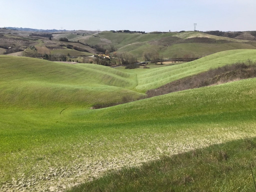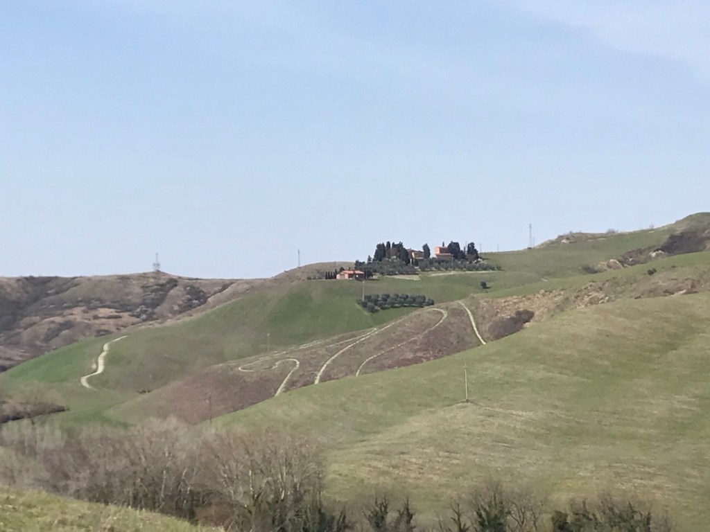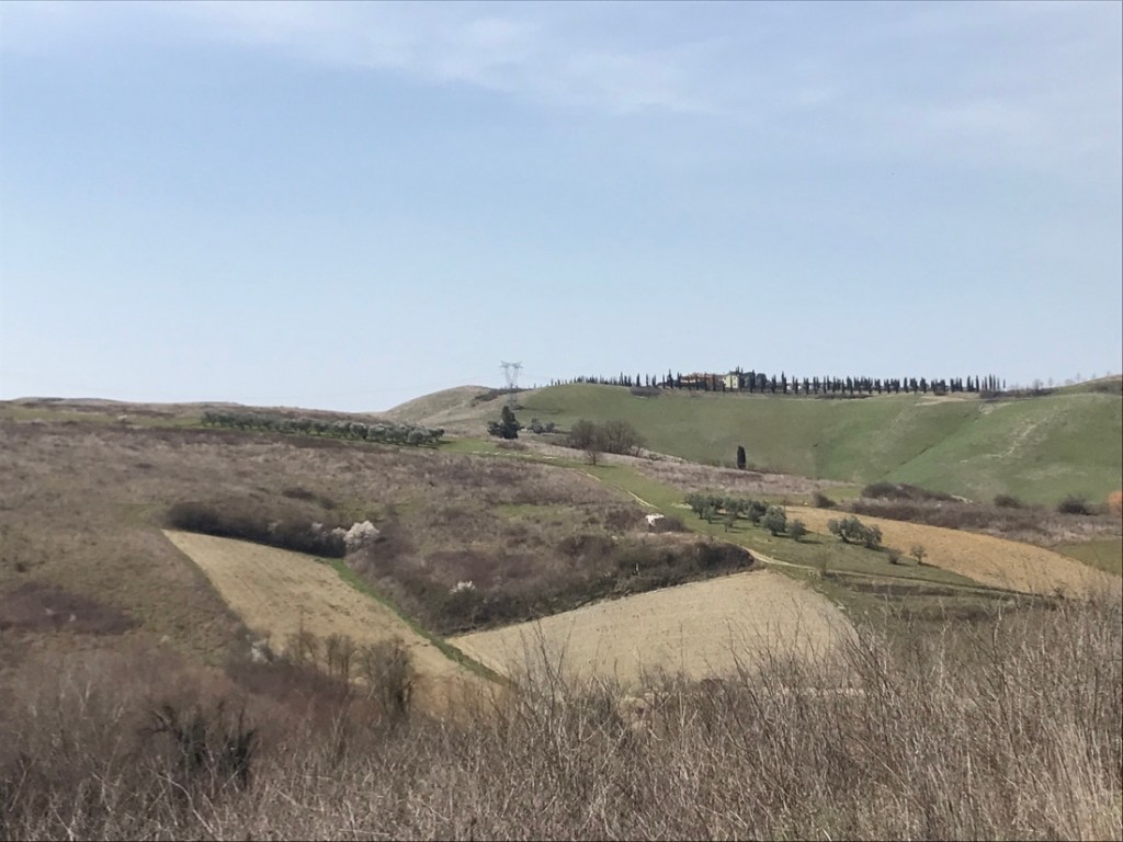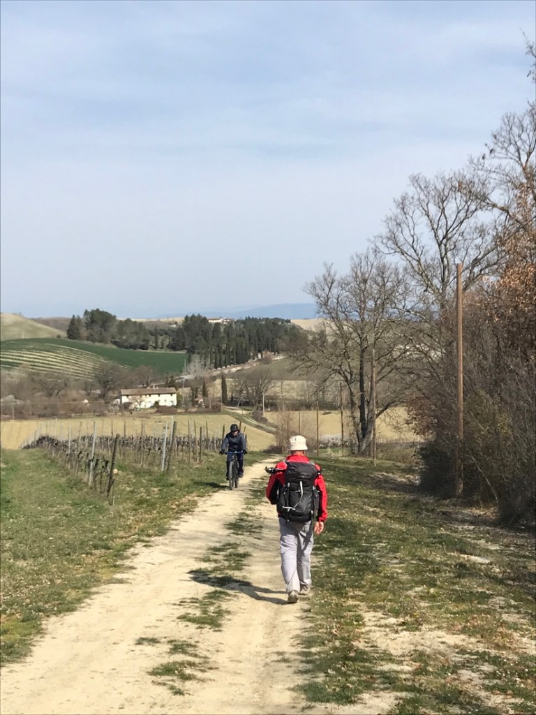 Nous croisons beaucoup de vélos, la plupart sont à assistance électrique, heureusement car la Toscane est très vallonnée.