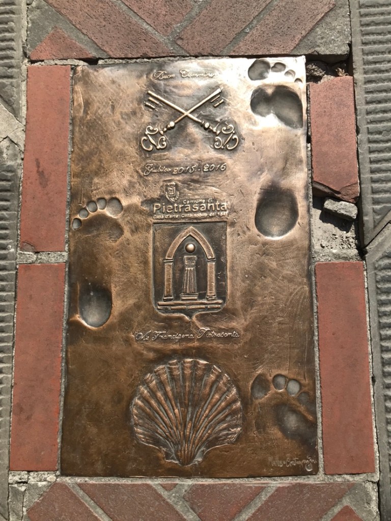Au dessus de la porte de l’église où démarre le chemin d’aujourd’hui à Camaiore.