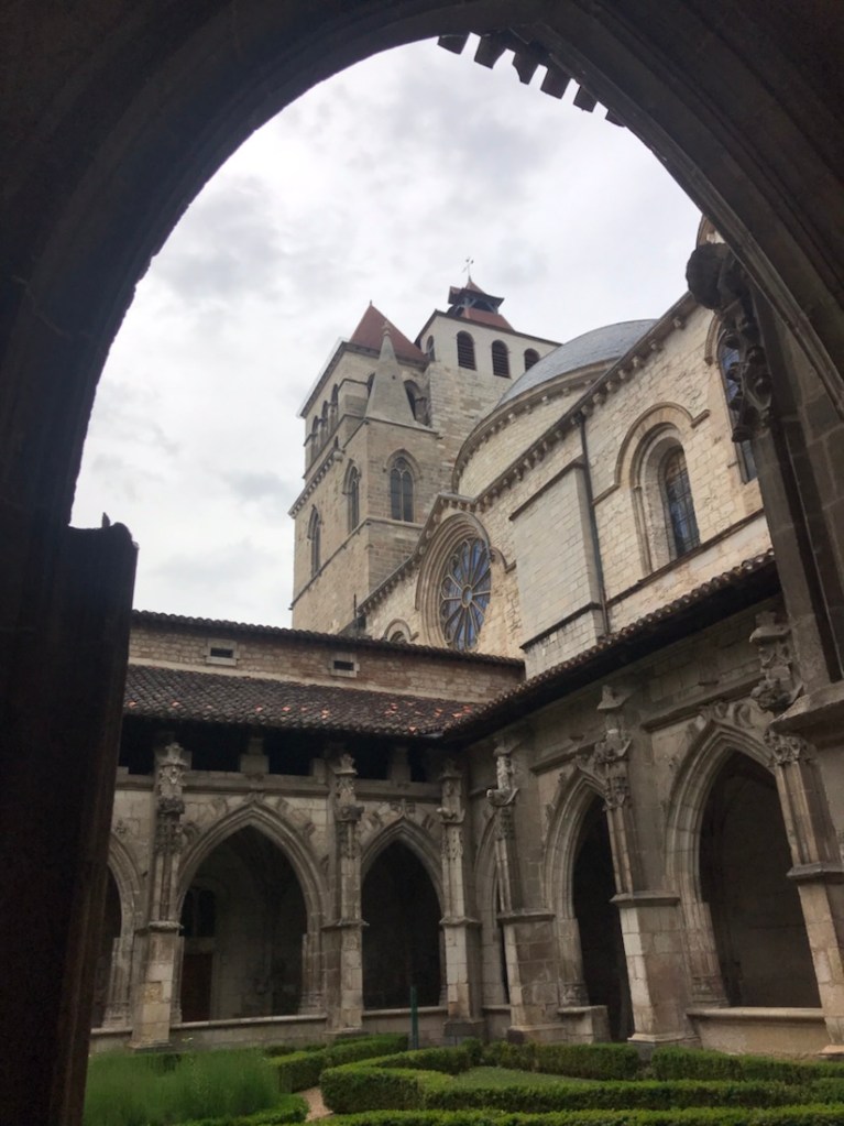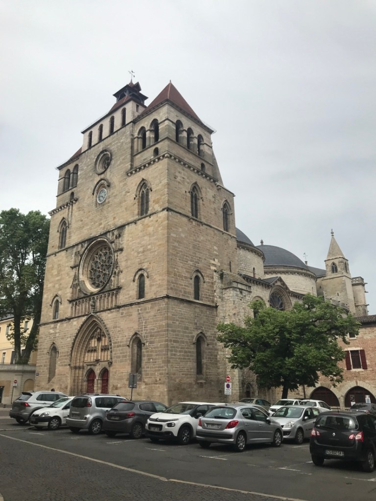 Cahors. Arrivée à l’heure. Rien à dire sur l’exactitude mais par contre beaucoup sur les escaliers à descendre et à monter pour sortir… si Yves n’était pas là avec ce vélo très lourd je n’aurais pas pu y arriver.