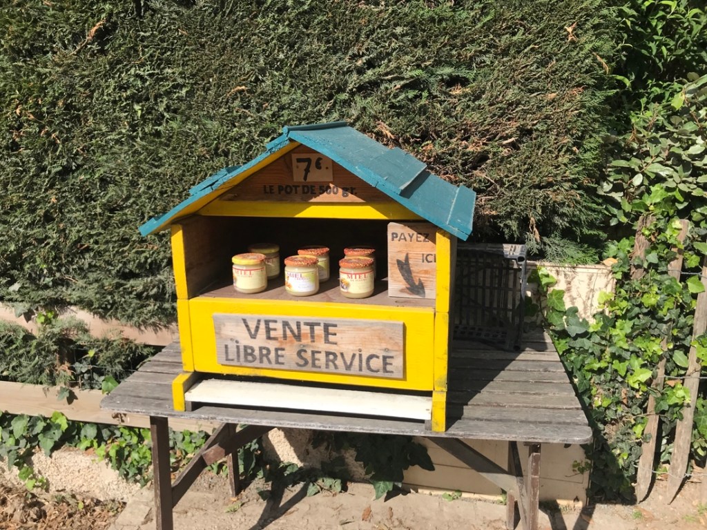 C’était un néerlandais qui vendait sa production de miel. C’est très rare que les gens se servent sans mettre l’argent.