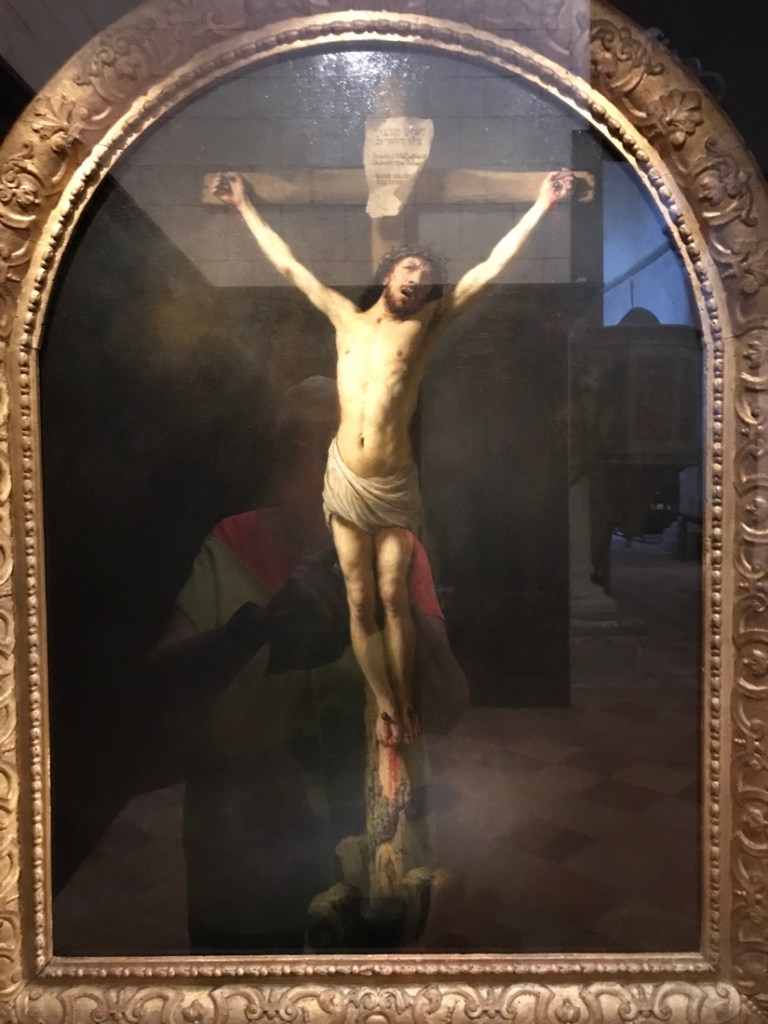Le Christ en Croix peint par Rembrandt. Pas facile à photographier car il est derrière une vitre.