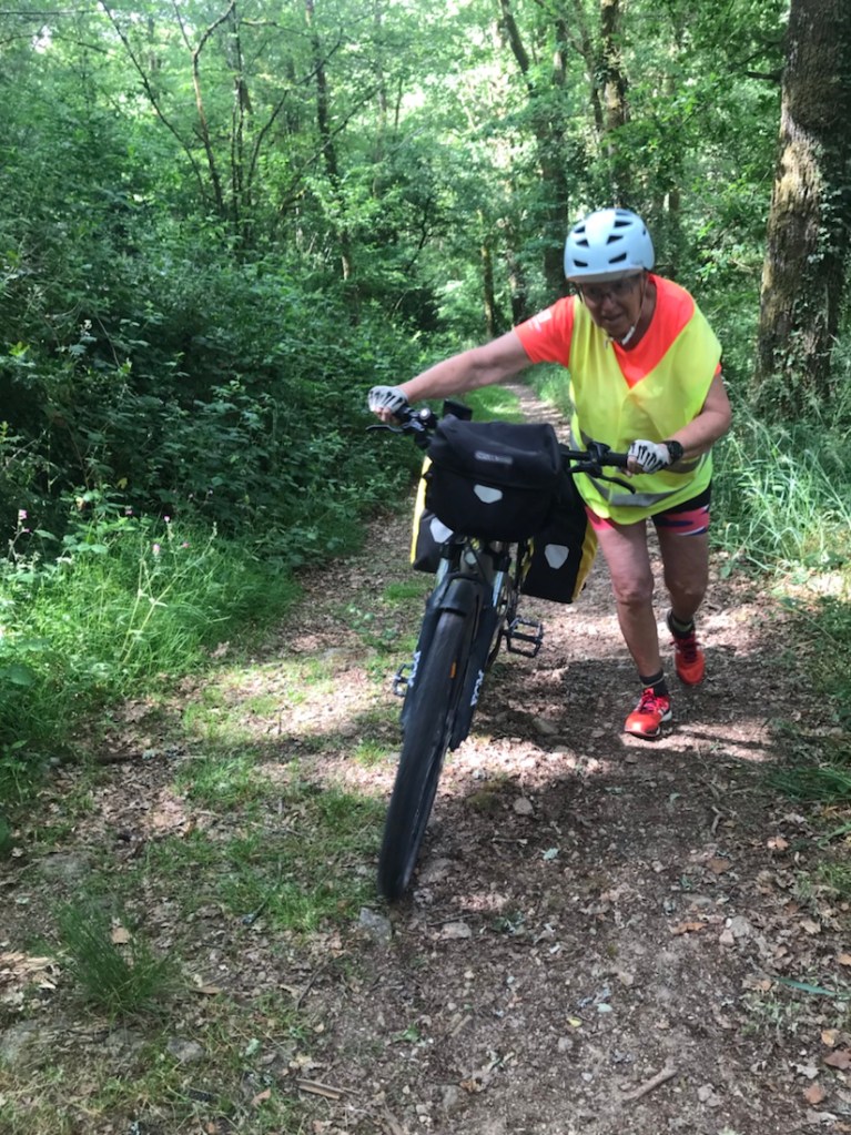 Qui devient très vite impraticable pour moi… dur, dur de pousser un vélo si lourd. Dès que nous avons pu nous avons quitté le parcours de gauche et sommes partis sur le parcours de droite qui ne passait que sur des routes goudronnées.