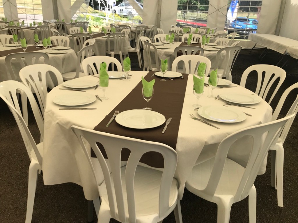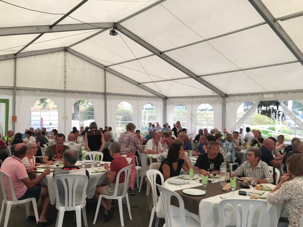 Ce soir, belles nappes, chemins de tables, vaisselle de location (chouette pas de vaisselle à faire). Enfin moins que d’habitude, il faudra quand même laver les gamelles dans lesquelles on nous a emmené les repas.