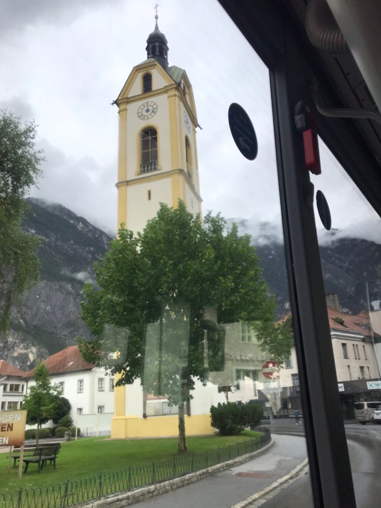 Landeck. À partir de là les 3 photos sont prises derrière les vitres du bus.