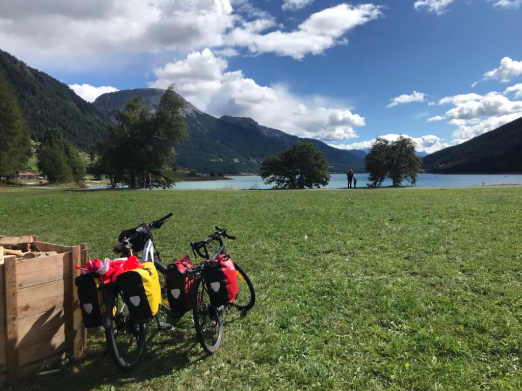 Et pendant ce temps-là, nos vélos se reposent en admirant le lac.