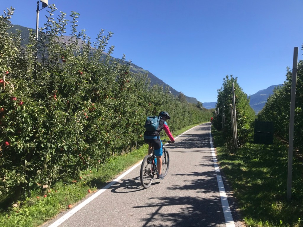 C’est normal, nous pédalons au milieu des vergers de pommes.