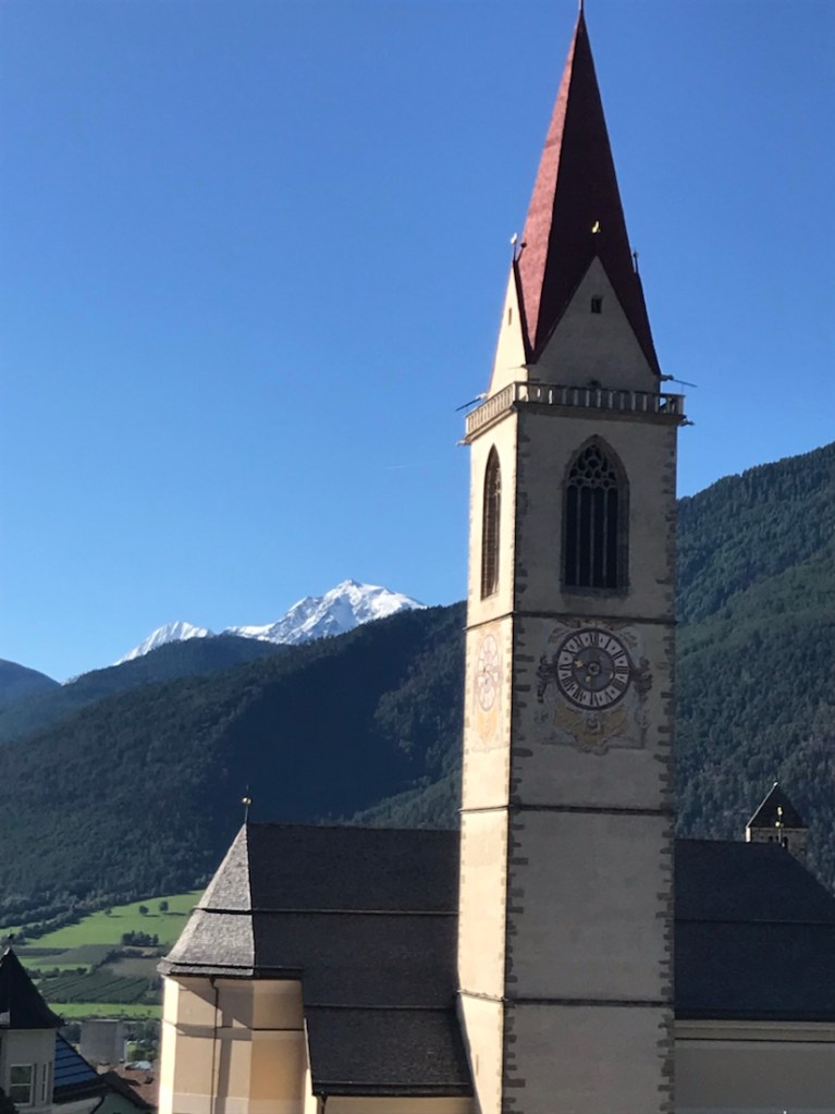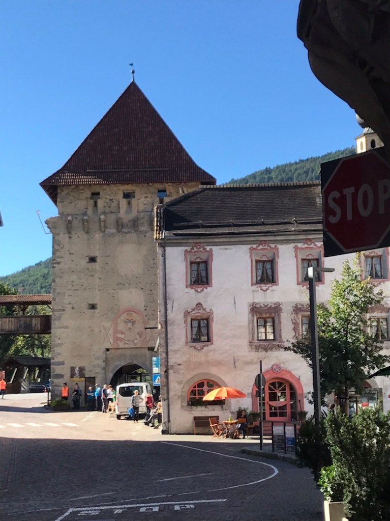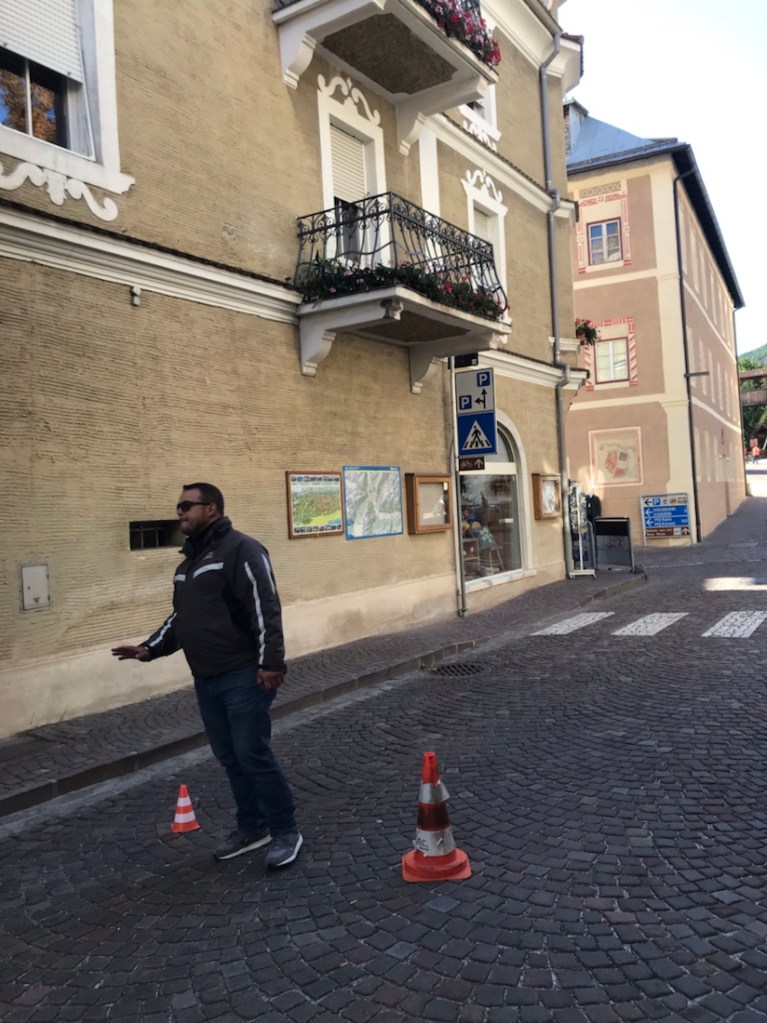 Et pour couronner le tout, ils sont en train de tourner un film sur la place du village, on nous arrête dans la rue et on nous demande de rester silencieux. Pas question de visiter la ville qui est soit-disant une des plus belles villes du sud Tyrol.