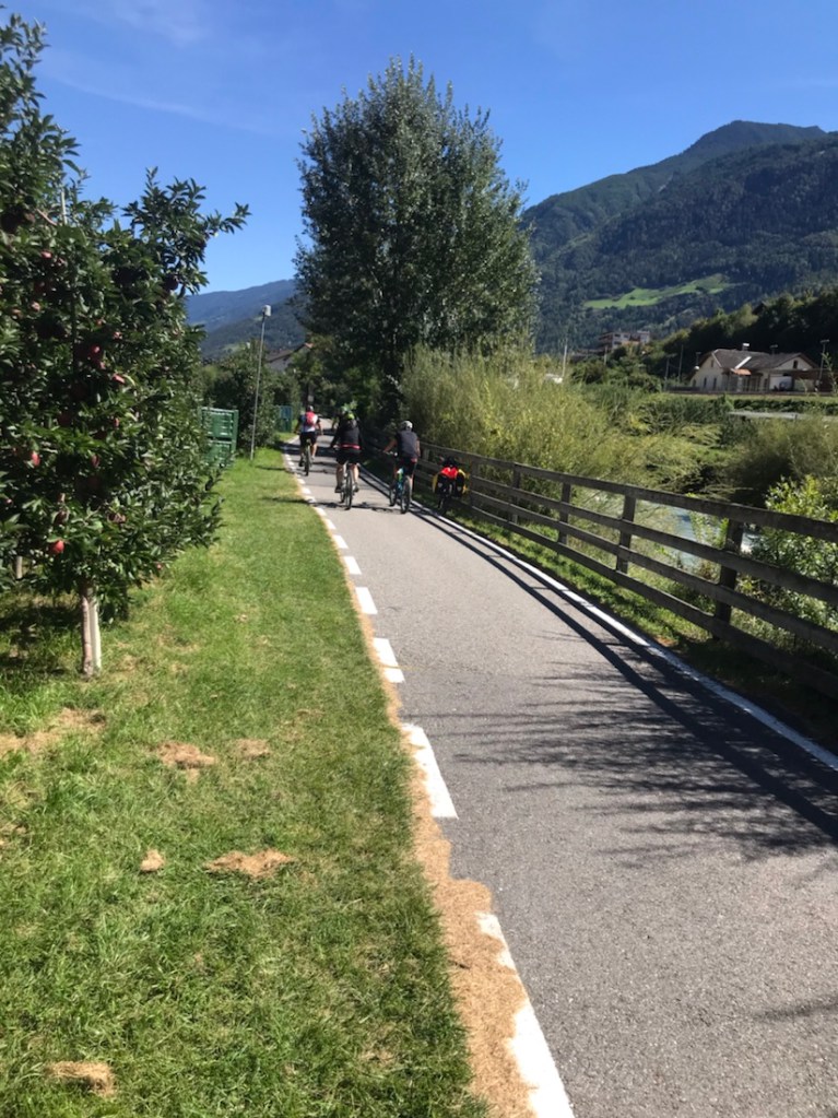 Depuis le début de notre périple nous croisons majoritairement des vélos à assistance électrique. C’est normal, vu les dénivelés ça permet à tout le monde de se promener et ils ne s’en privent pas.