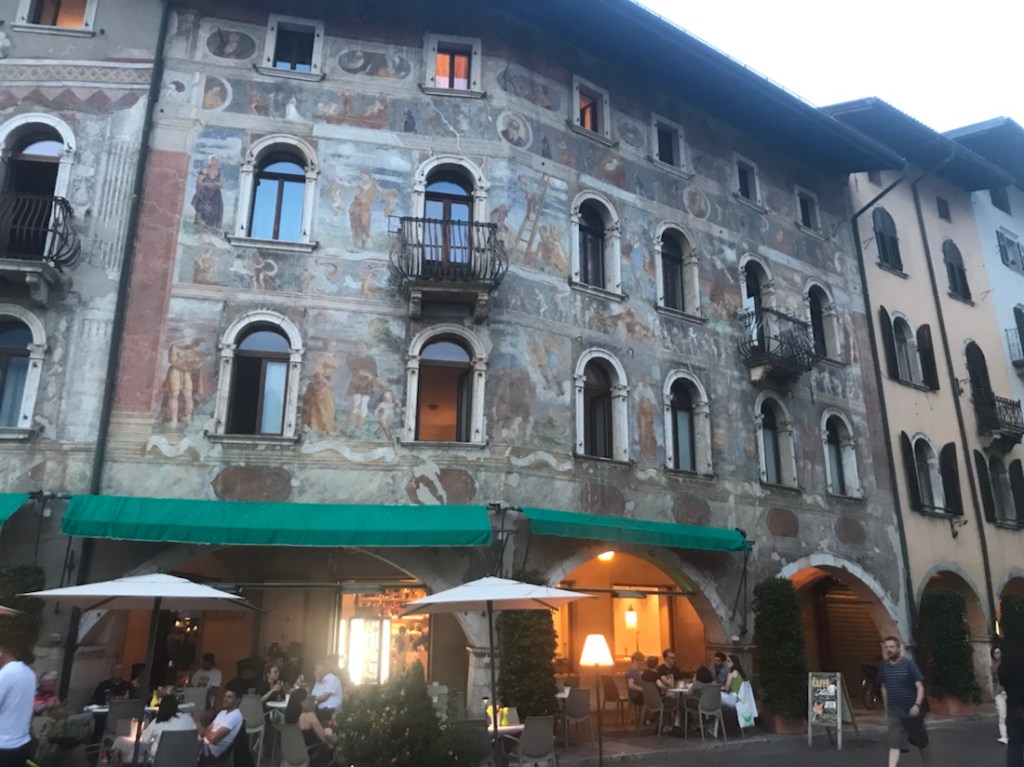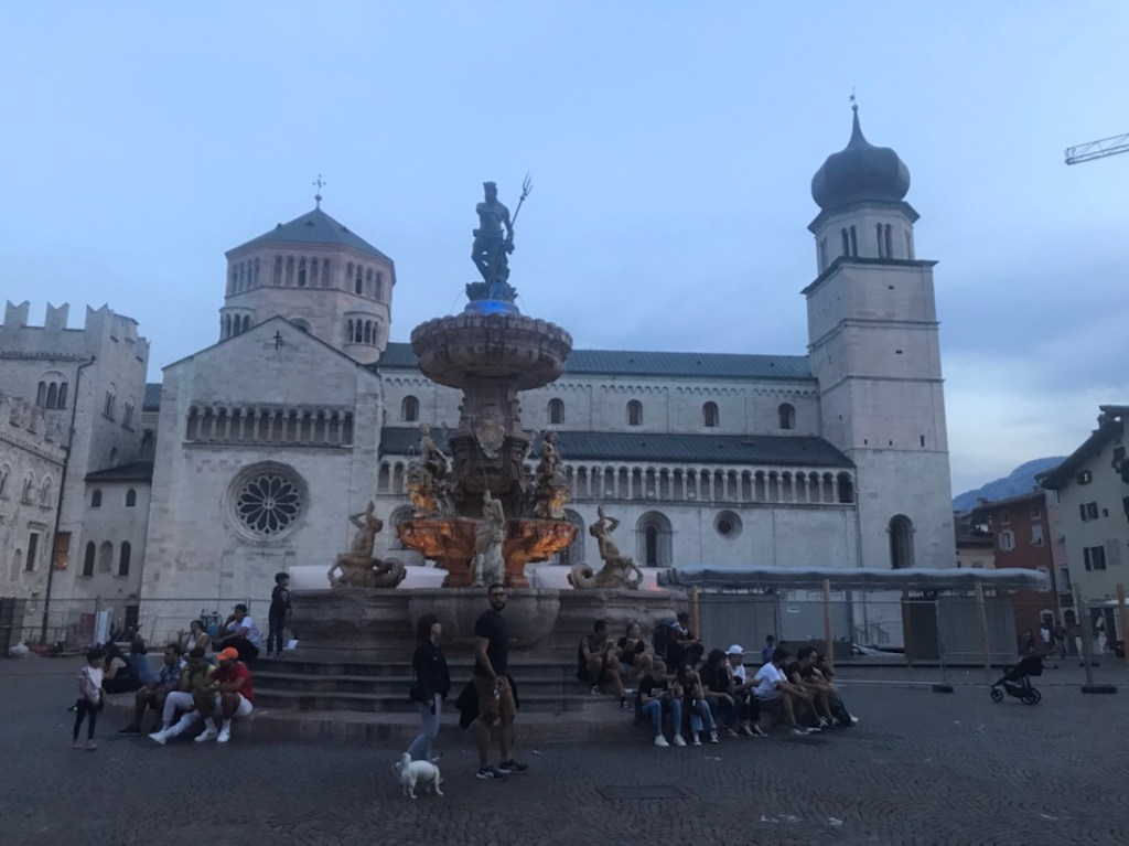La dernière fois que j’ai fait 100 km en vélo c’était dans le vignoble de Sauternes. Arrivée à l’hôtel je me suis couchée et lorsque Yves a voulu sortir pour aller manger je ne me suis pas levée. Ce soir je suis sur une place à Trente en train de boire l’apéritif. J’ai dû rajeunir !!!