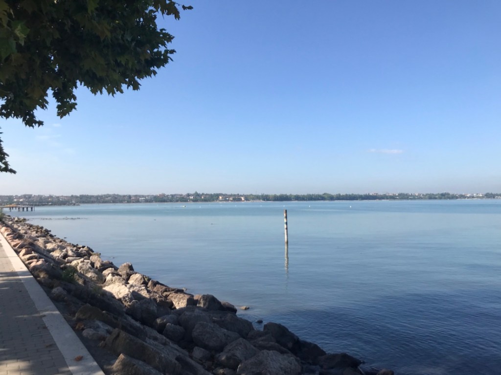 Je déchante vite, il y a beaucoup de circulation, de vélos, de piétons. Nous n’irons pas jusqu’à Sirmione au bord du lac, ce n’est pas agréable de pédaler, on slalome entre les piétons et le reste.