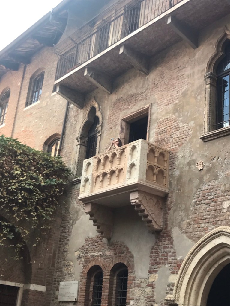 Le balcon de Juliette, la foule en bas, difficile de le photographier vide, les femmes se succédaient pour se faire photographier.