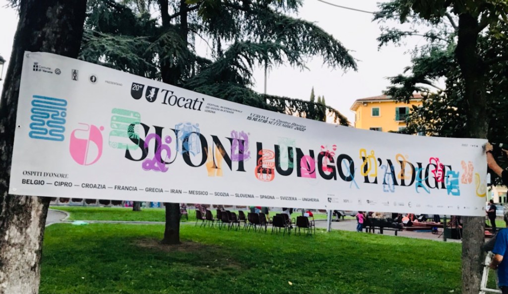 Nous faisons une pause à la cuisine du festival, au bord de l’Adige.